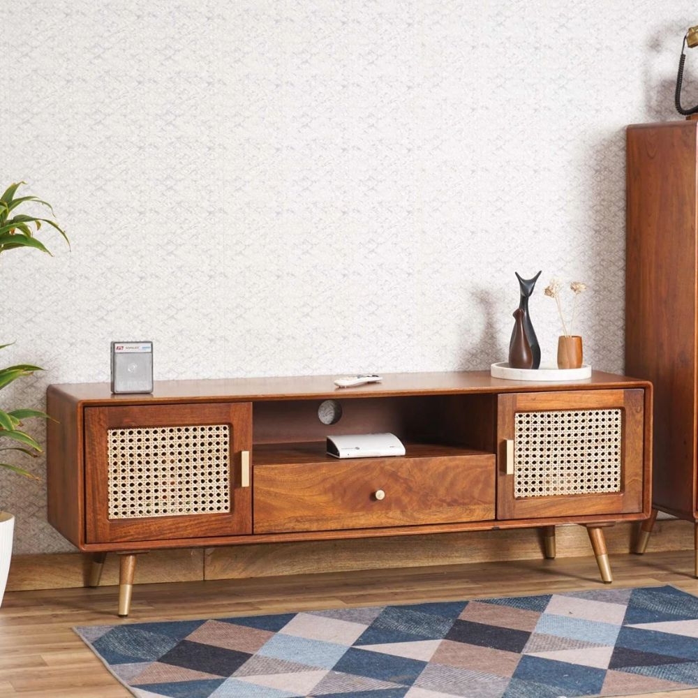 Antique Cane Tv Cabinet – Brown Finish