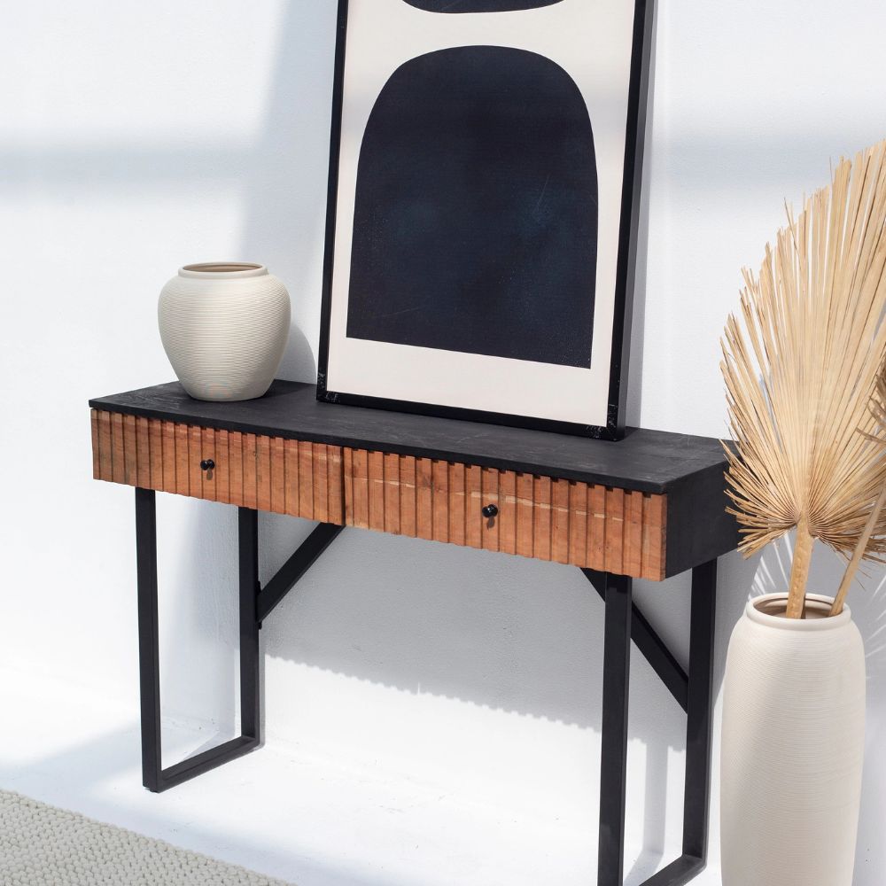Black Two Drawer Wooden Console