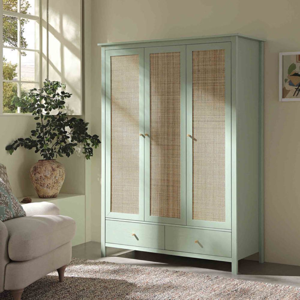 Frances Rattan Triple Closet with 2 Drawers, Mint
