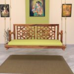 Fusion Flowered Carved Back Handmade Wooden Swing for Home [Jhula]