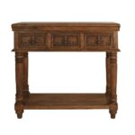 Hand Carved Design Console Table Natural Finish