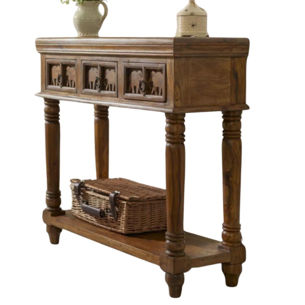 Hand Carved Design Console Table Natural Finish
