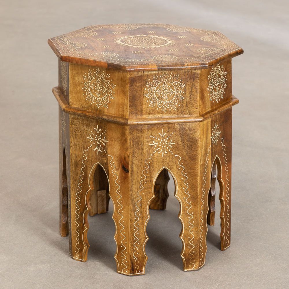 Hand Work Half Round Wooden Side Table