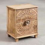 Handcarved Bedside Table with Drawers