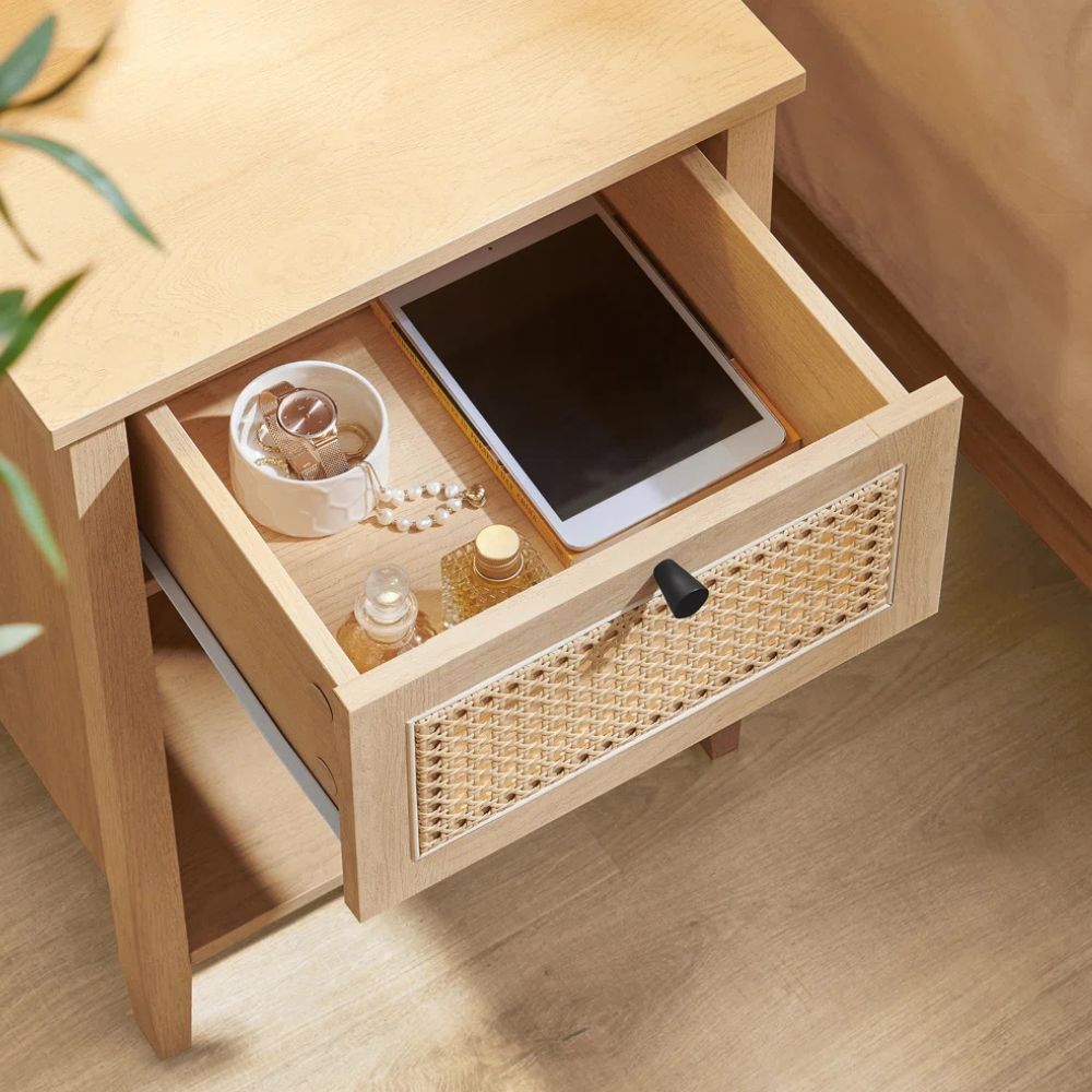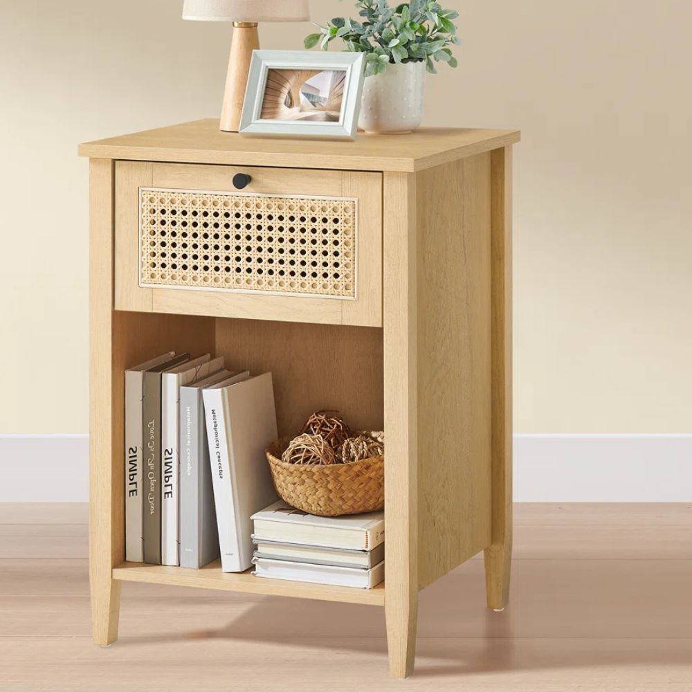 Handcrafted Bedside Table 1 Drawer Natural-Finish
