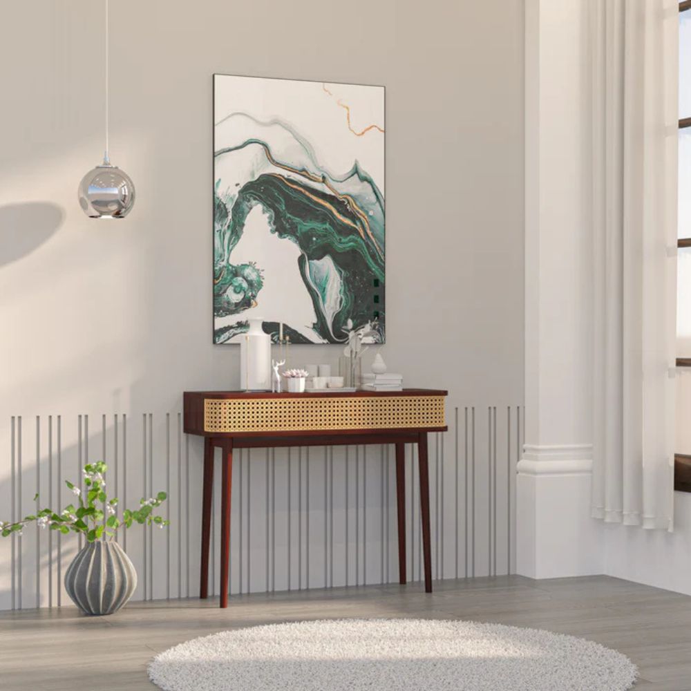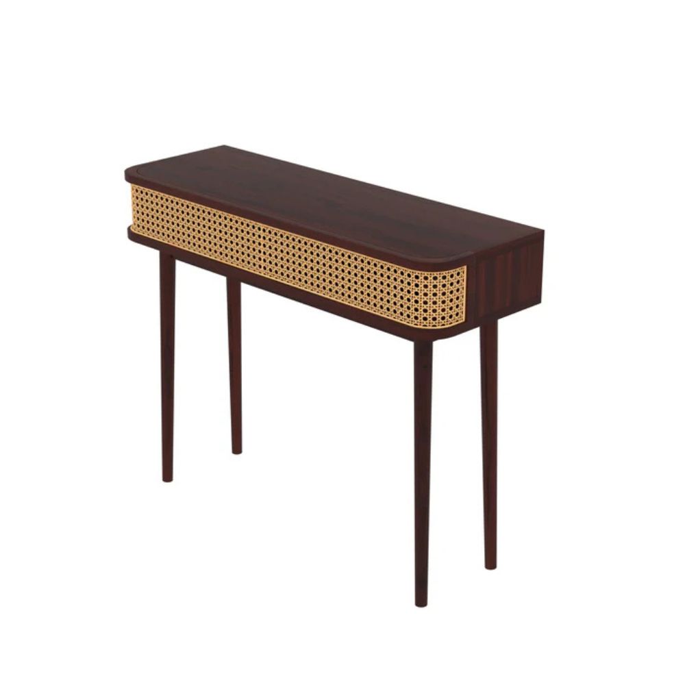 Handcrafted Cane & Wooden Console Table