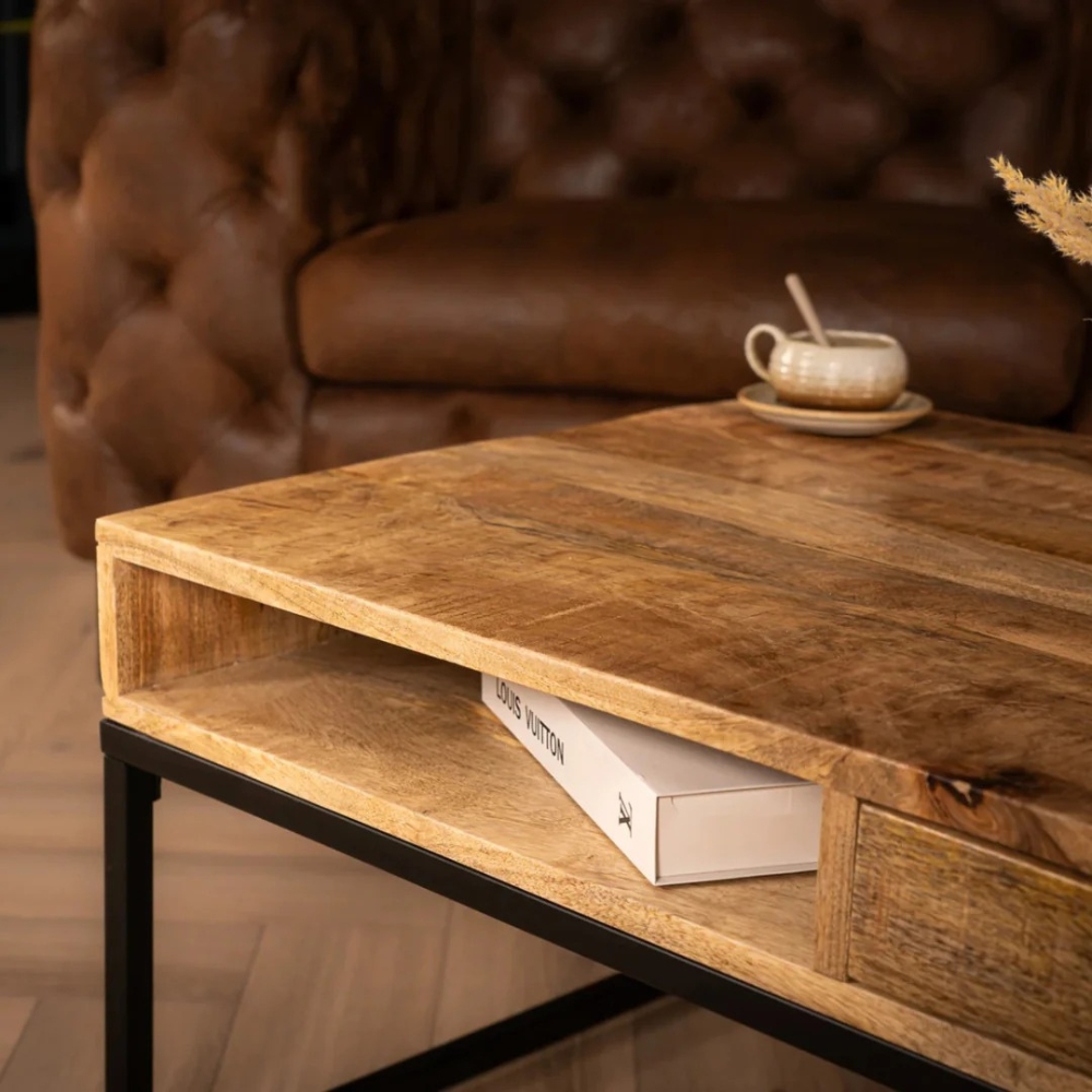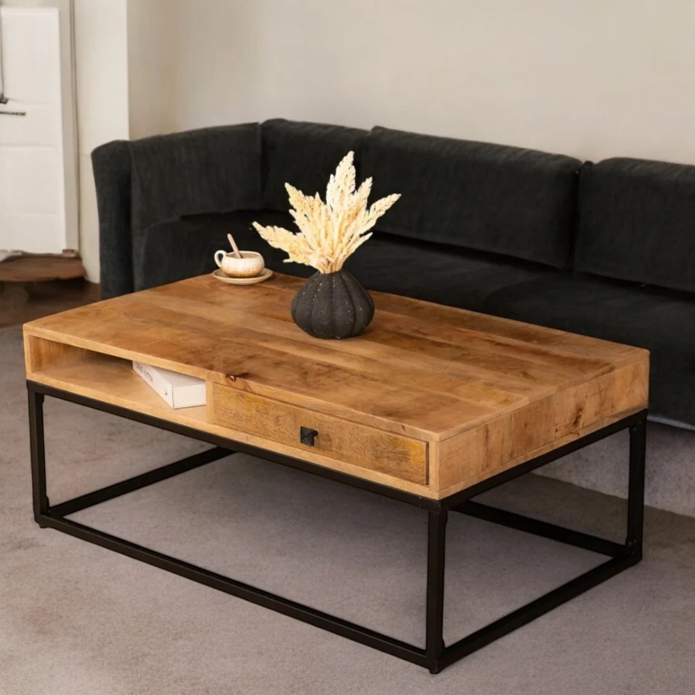 Handcrafted Drawer Natural Mango Wood Coffee Table