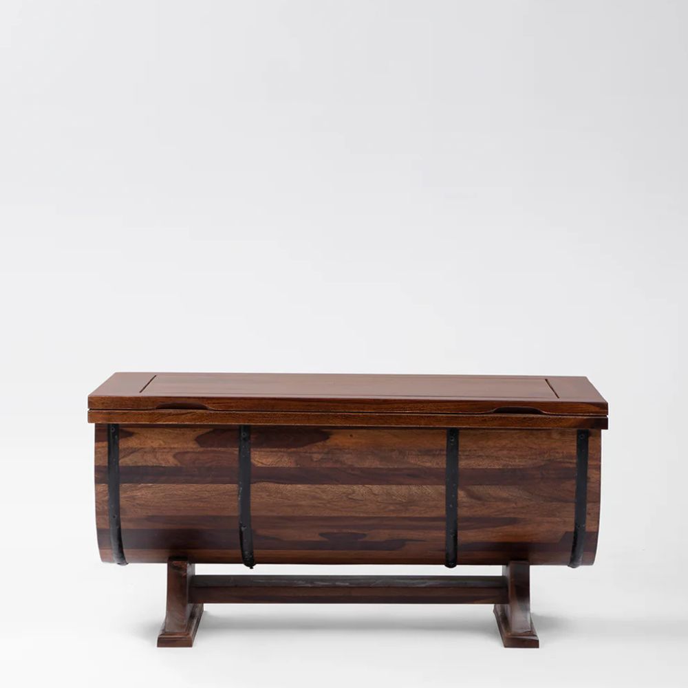 Handcrafted Shape Solid Wood Coffee Table With Storage