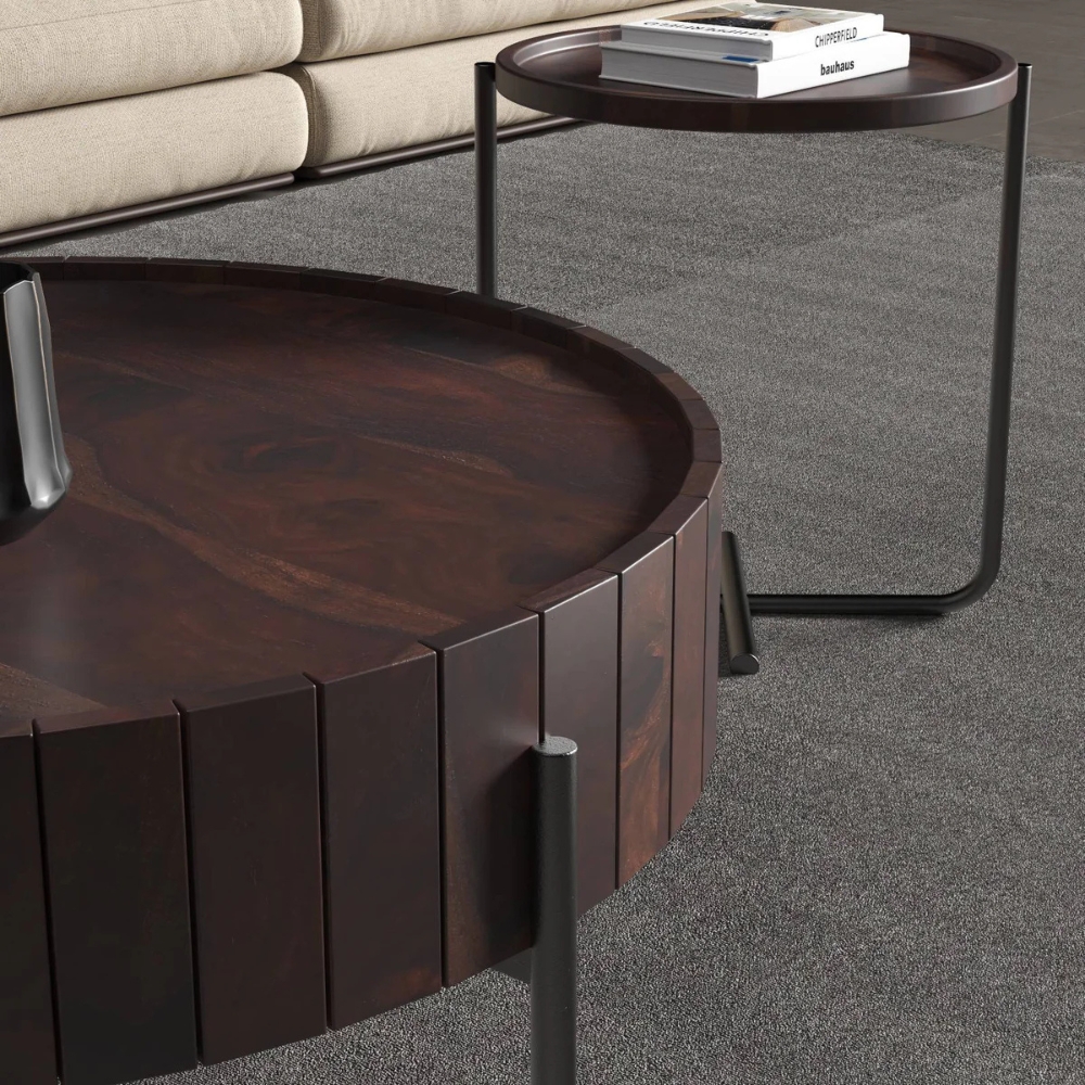 Handcrafted Sheesham Wood Round Coffee Table