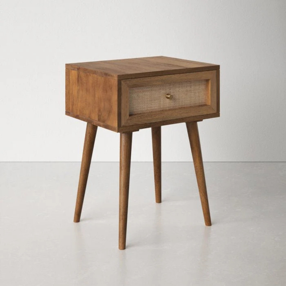 Handcrafted Wooden 1 Drawer Bedside Table Natural Mango Finish