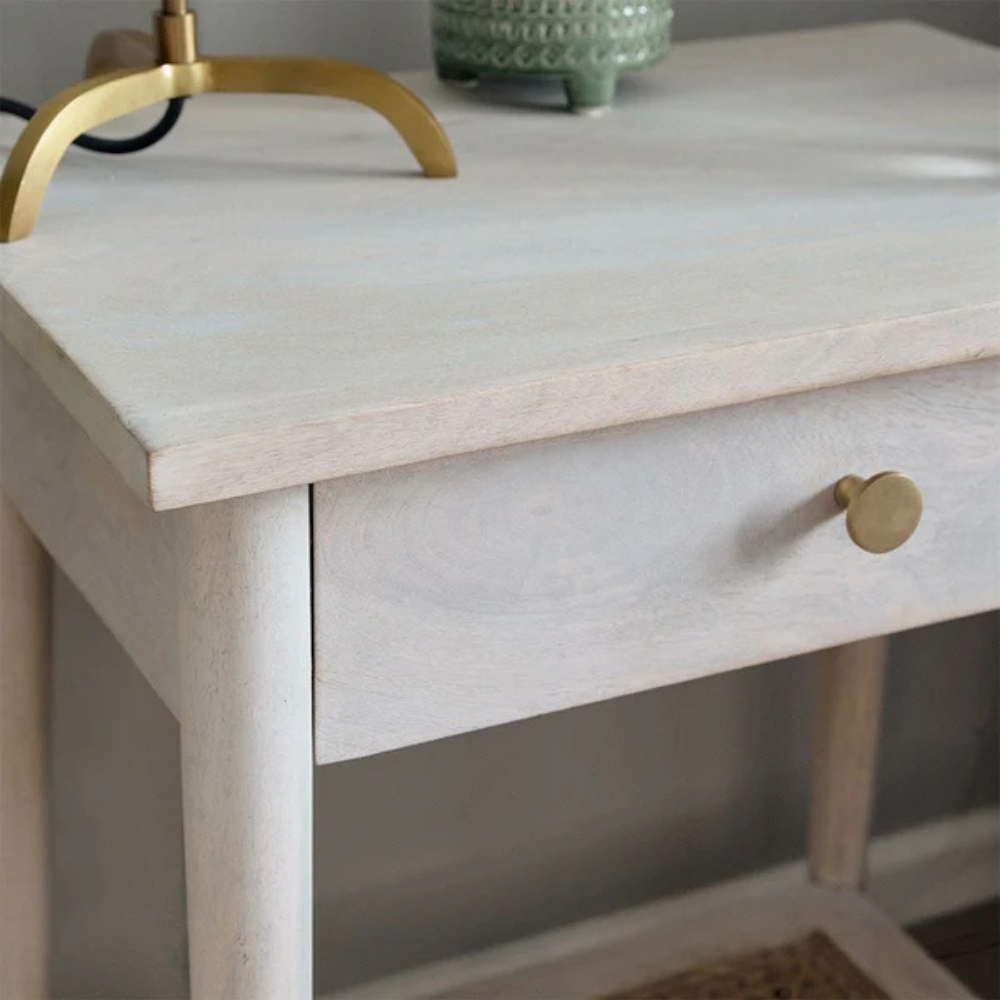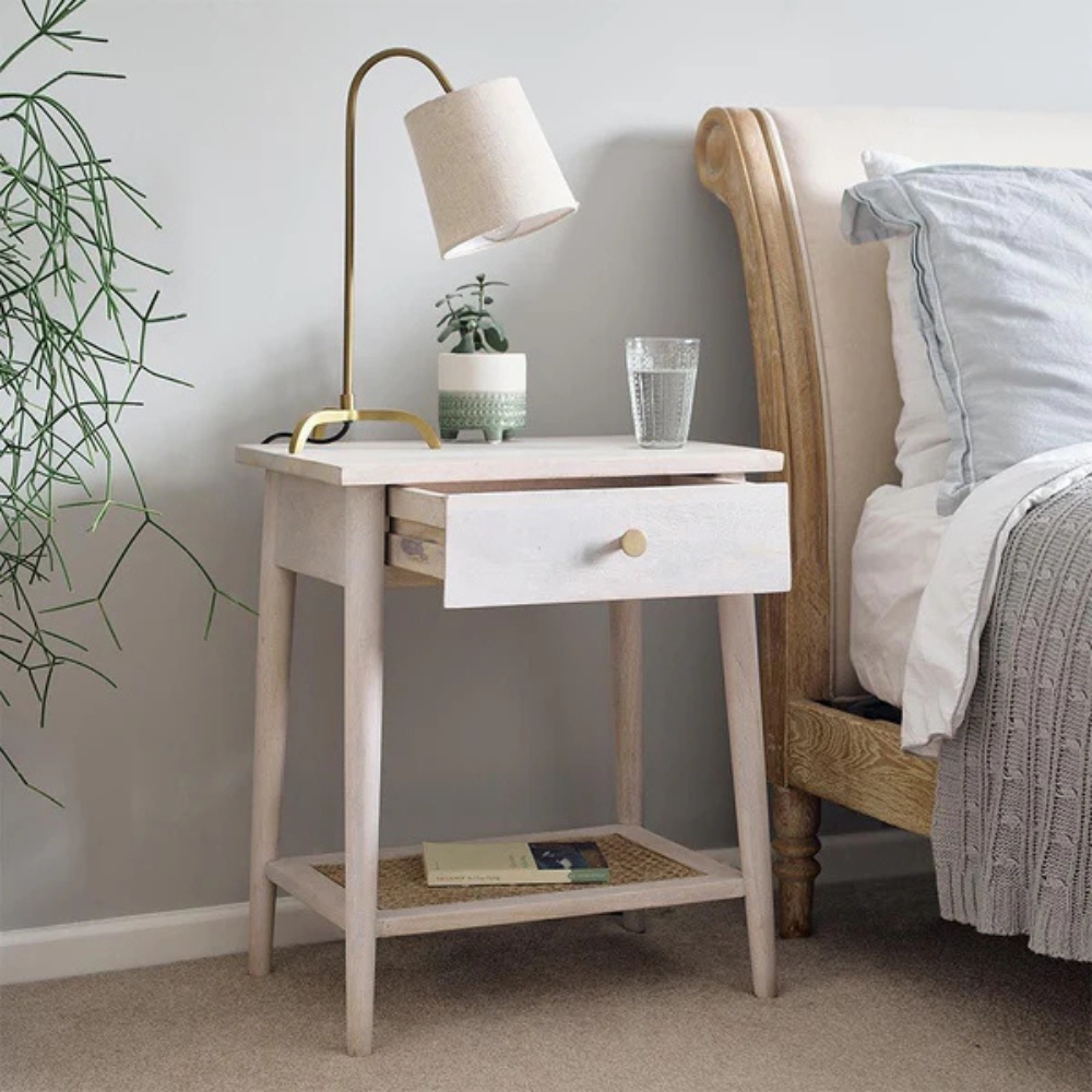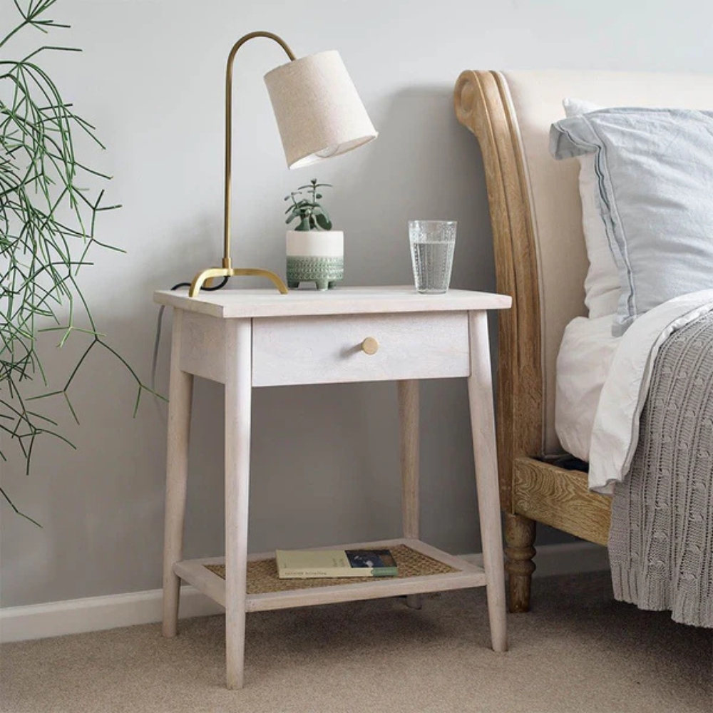 Handcrafted Wooden Bedside Table Natural Mango Finish