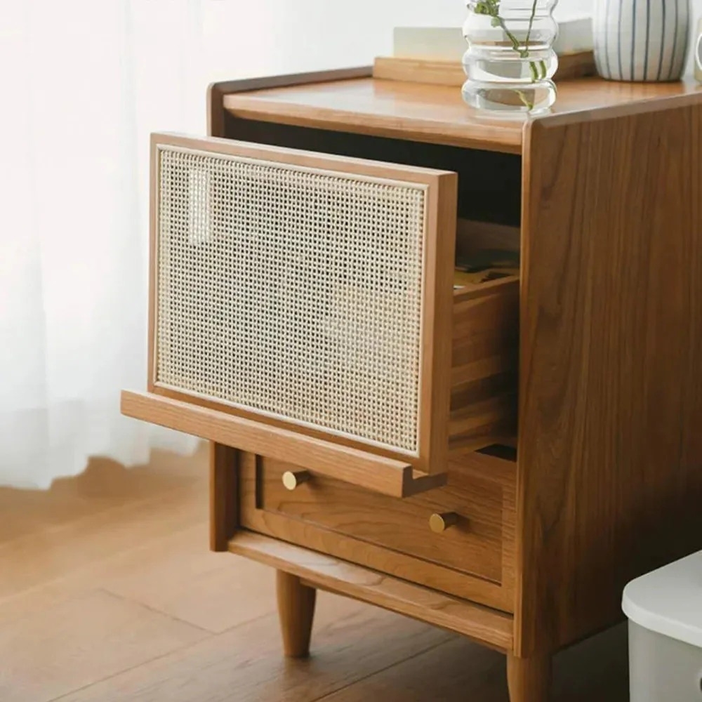 Handcrafted Wooden Cane Bedside Table Natural Mango Finish