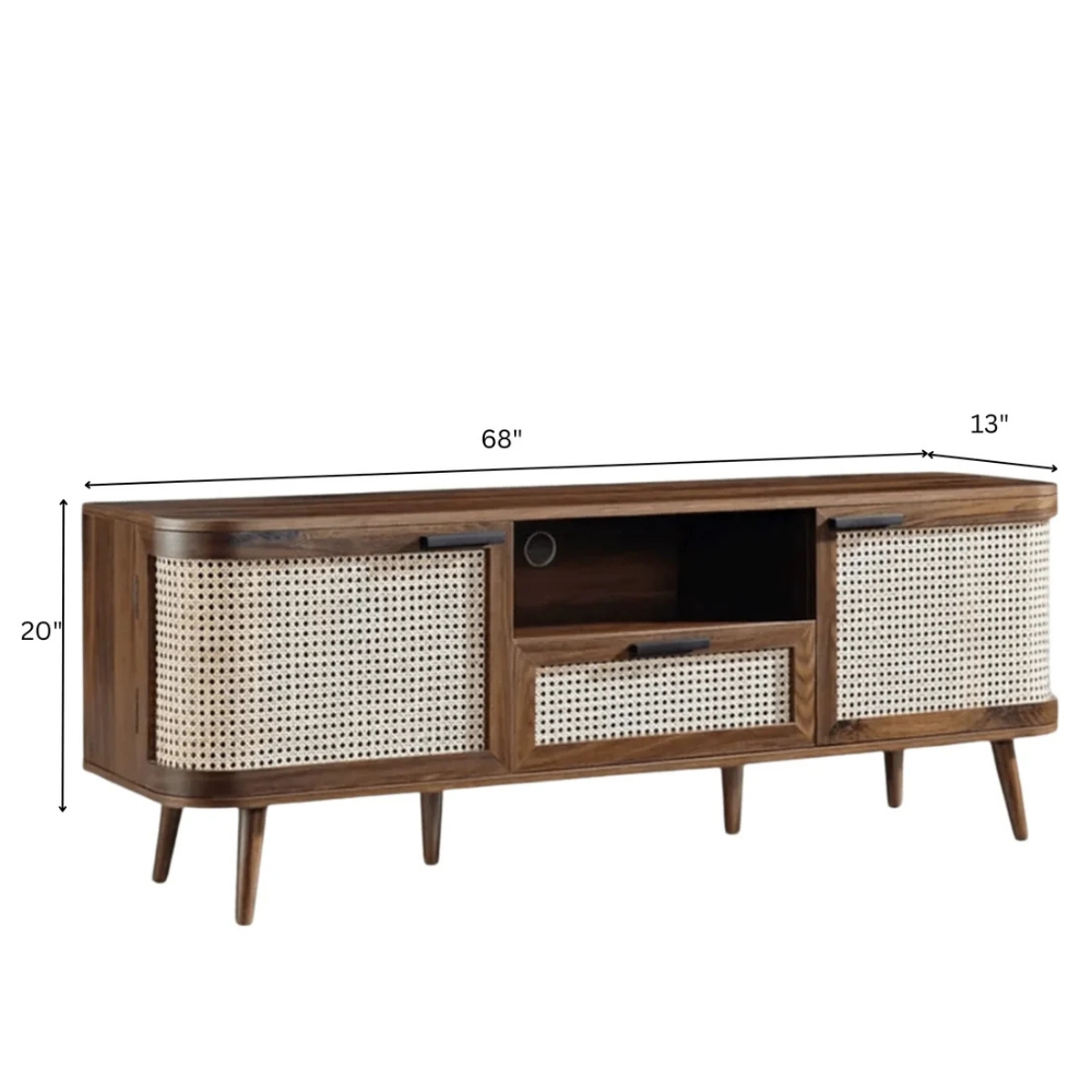 Handcrafted Wooden Cane Tv Cabinet – Brown Finish