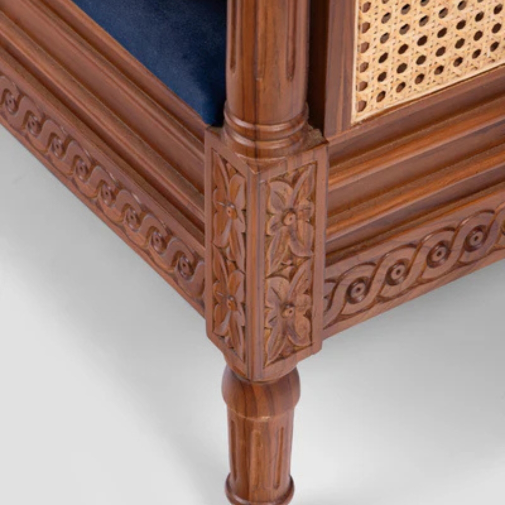 Handcrafted Wooden Curved Cane Sofa