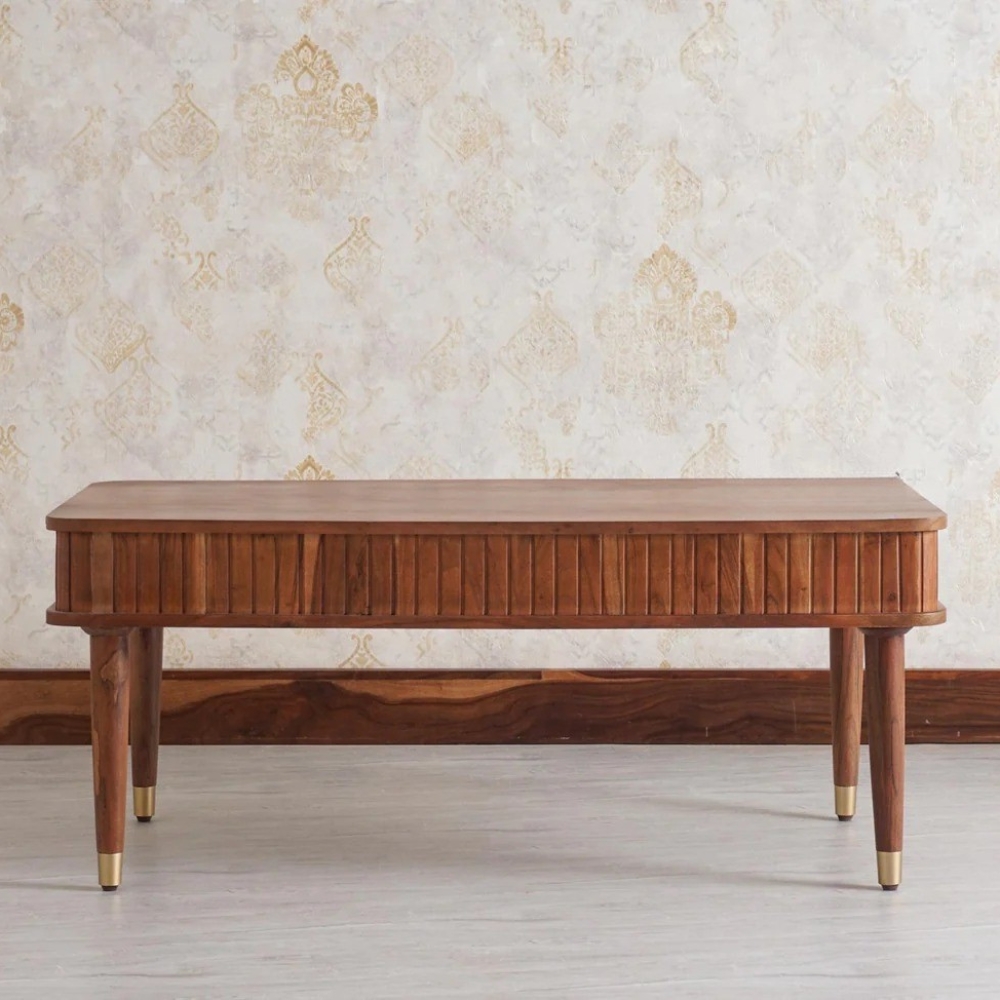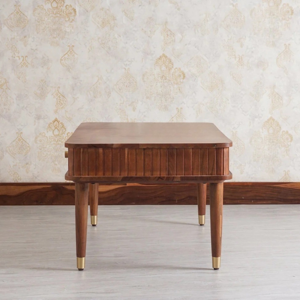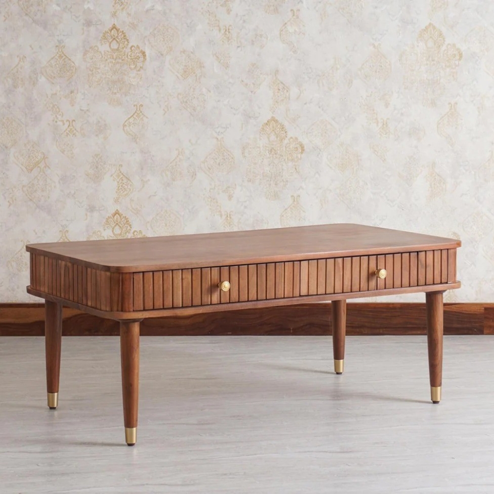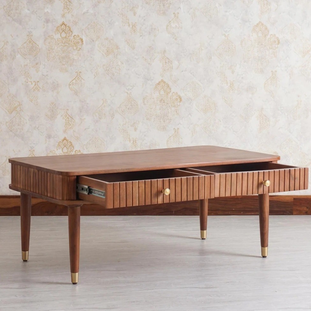 Handcrafted Wooden Two Drawer Solid Coffee Table