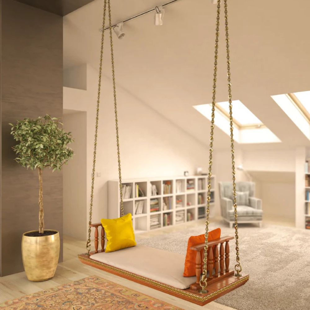 Modern Swing in Tone Pu Finished Solid Wood with Cane Weaves and Silver Finished Brass Chain Original price was: ₹59,999.00.Current price is: ₹49,999.00.