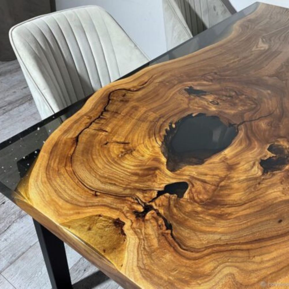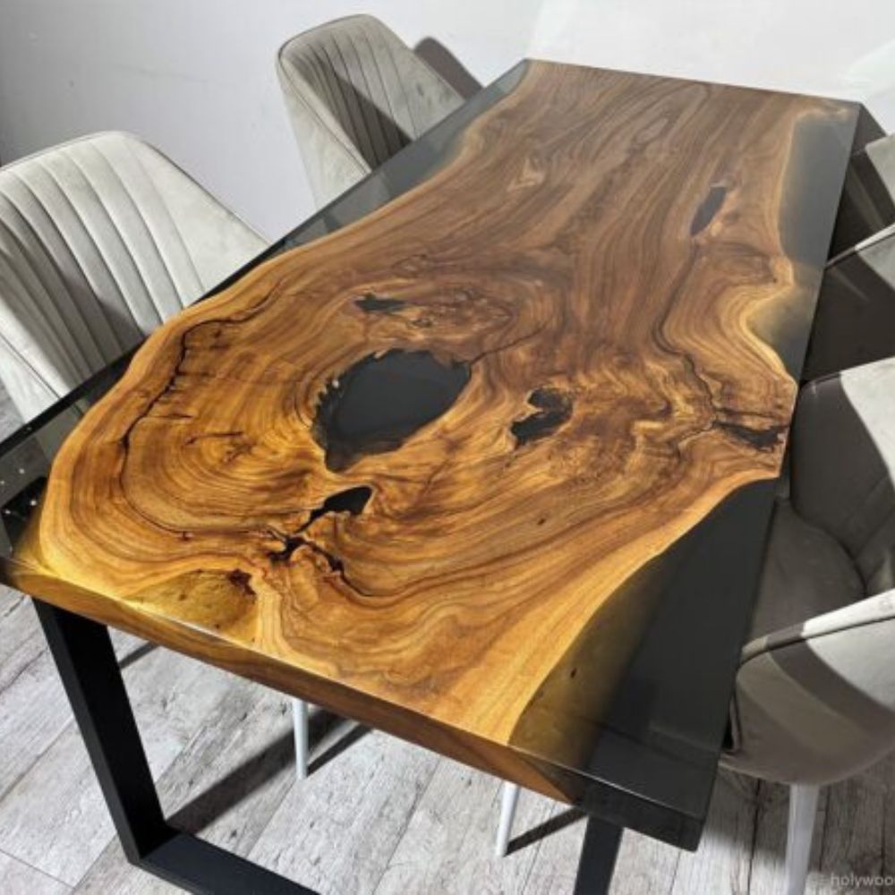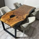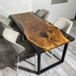 Live Edge Modern Wooden Dining Table With 4 Chair
