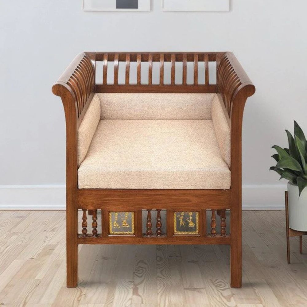 Mango Wood 1 Seater Sofa in Walnut Colour