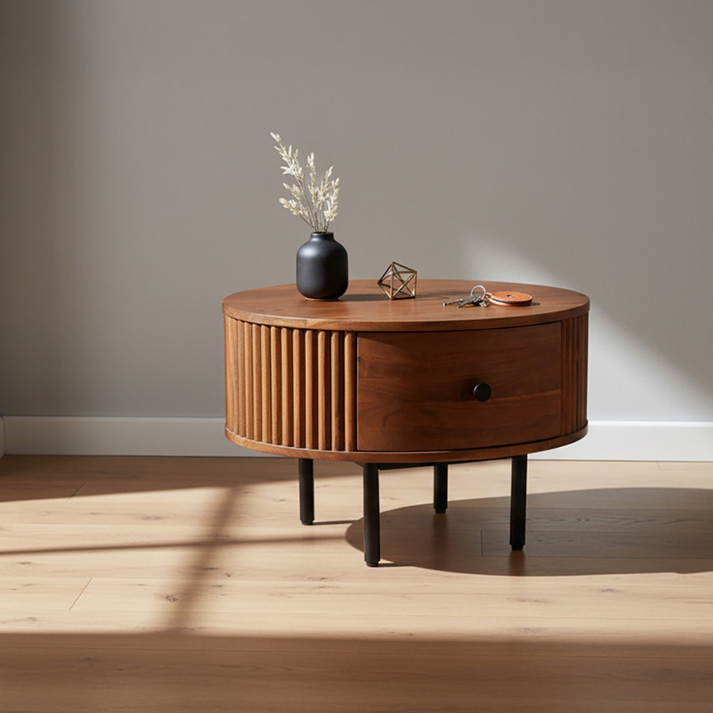 Solid Mango Wood Modern Drawer End Table
