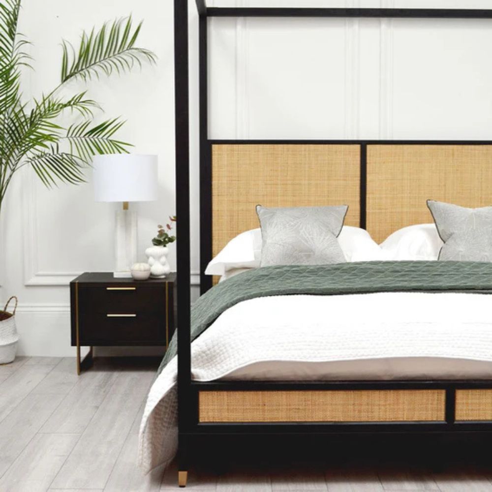 Solid Wood Rattan 4 Poster Bed