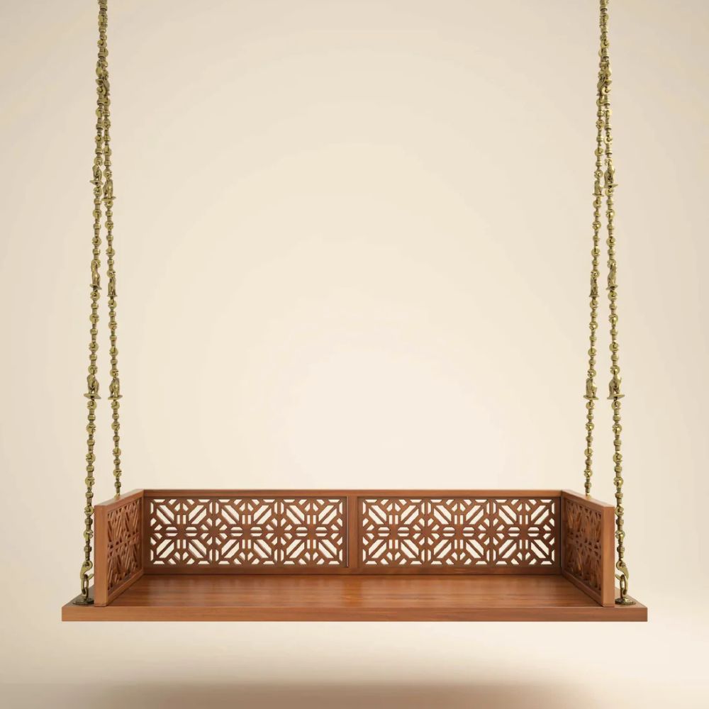 Solid Wood Swing with Traditional Brass Animal Motif Chain Links