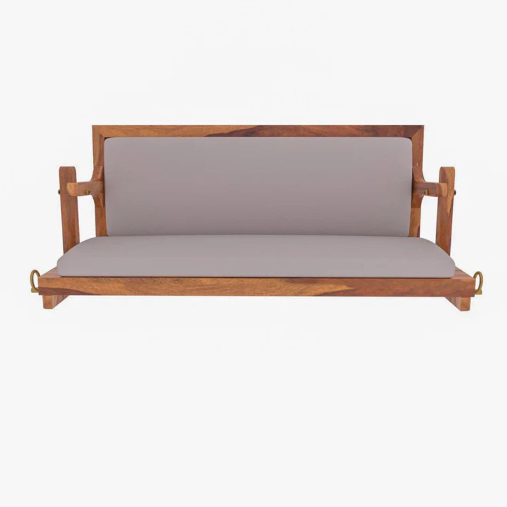 Vintage White Upholstered Simple Handmade Wooden Swing for Home [Jhula]