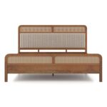 Wooden Artistic Cane King Size Brown Walnut Finish Fabric