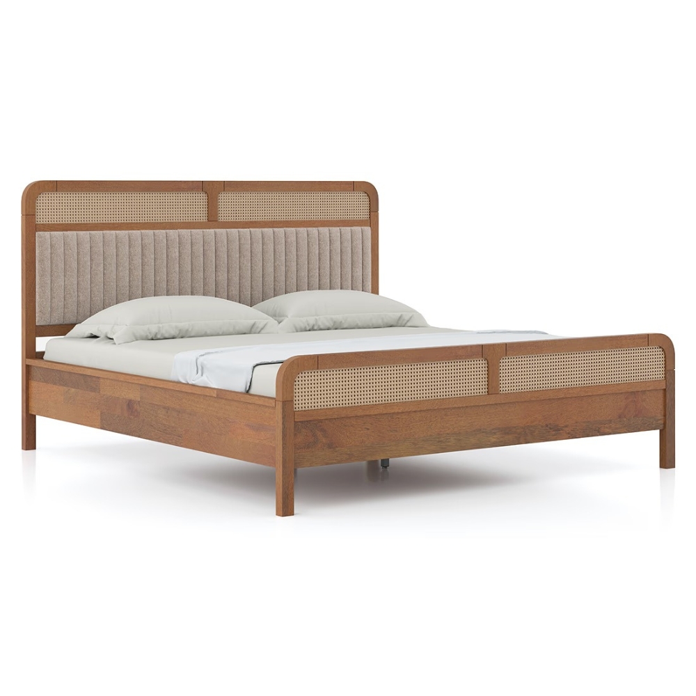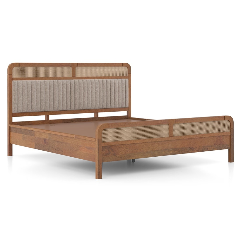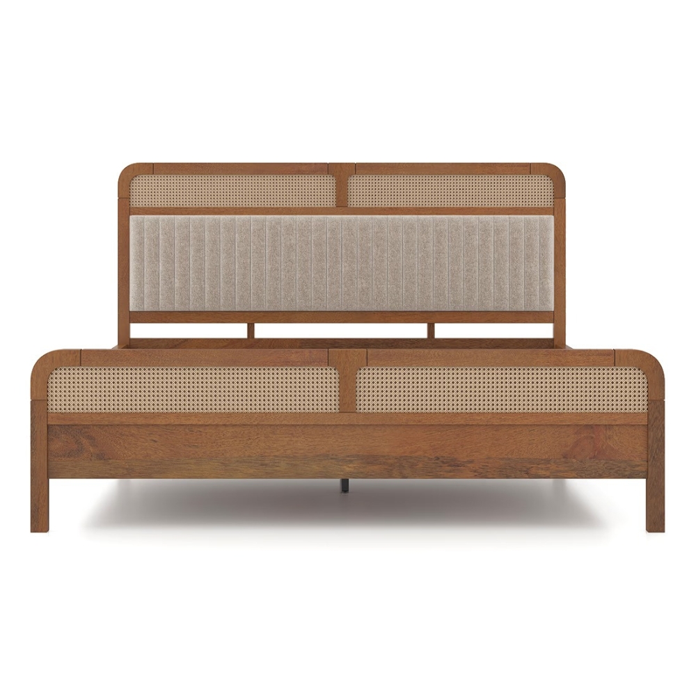 Wooden Artistic Cane King Size Brown Walnut Finish Fabric