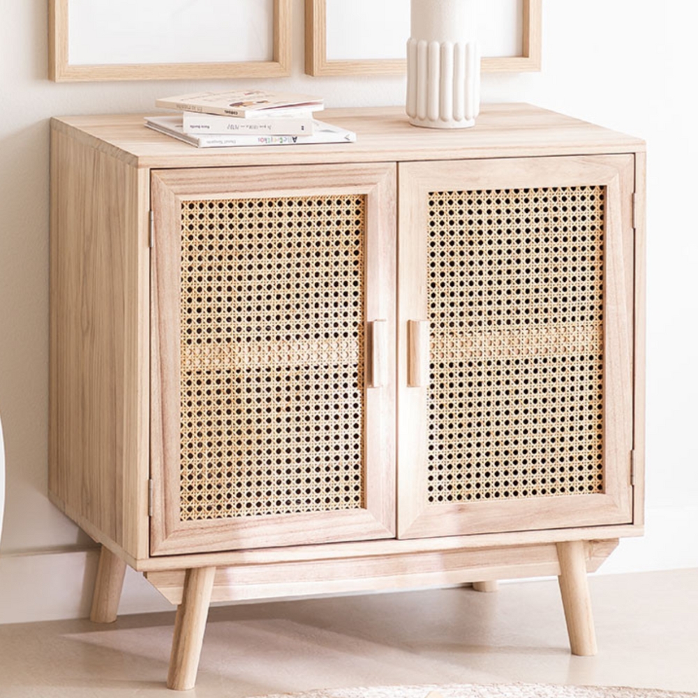 Wooden Cane 2 Door Natural Finish Sideboard Furniture