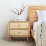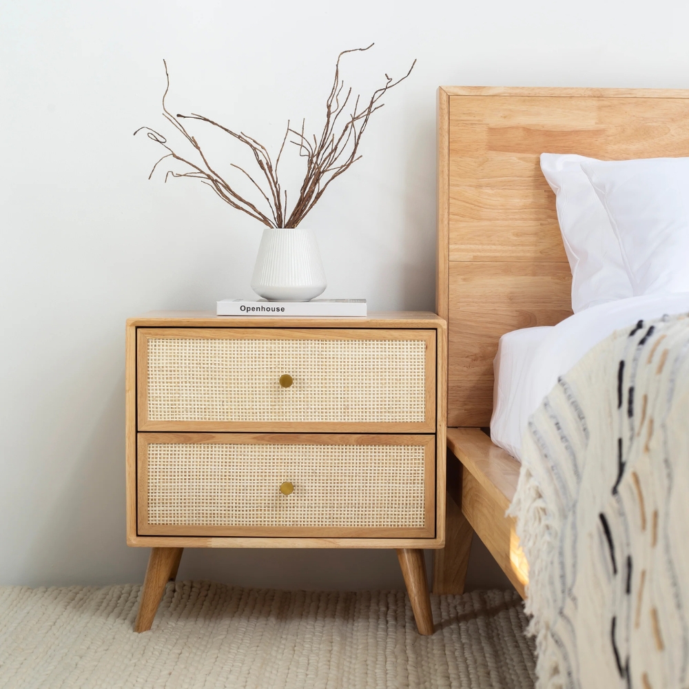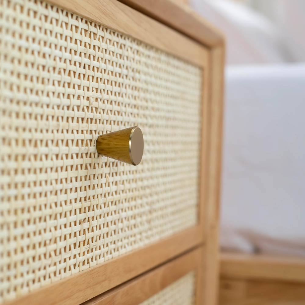 Wooden Cane 2 Drawer Bedside Table