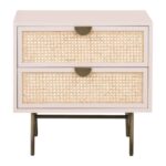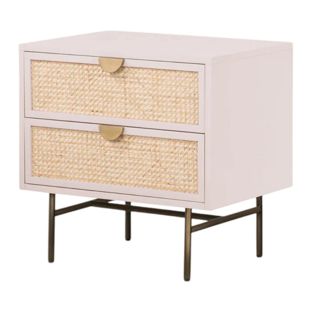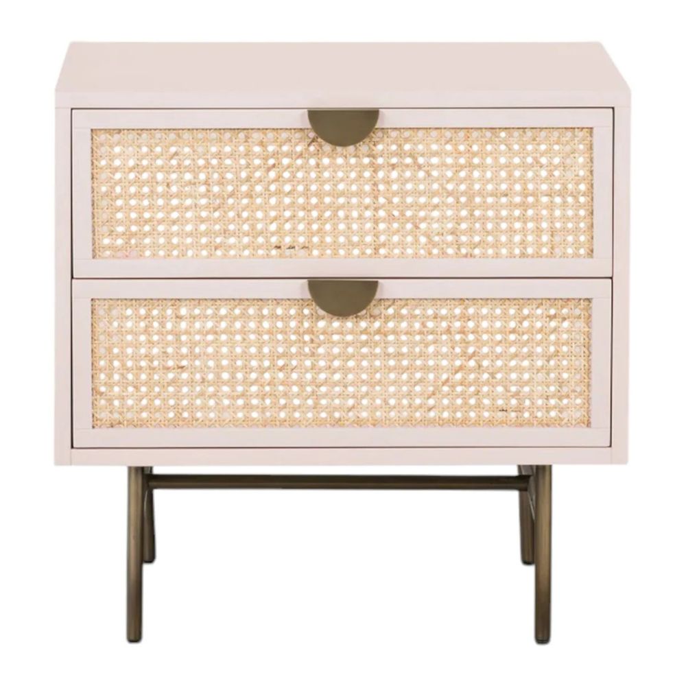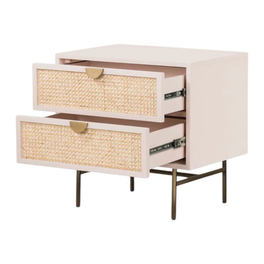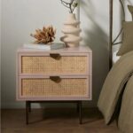 Wooden Cane 2 Drawer Bedside Table