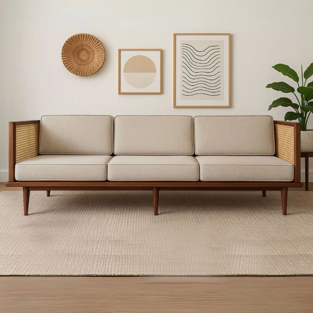 Wooden Cane Handcrafted Carving Sofa