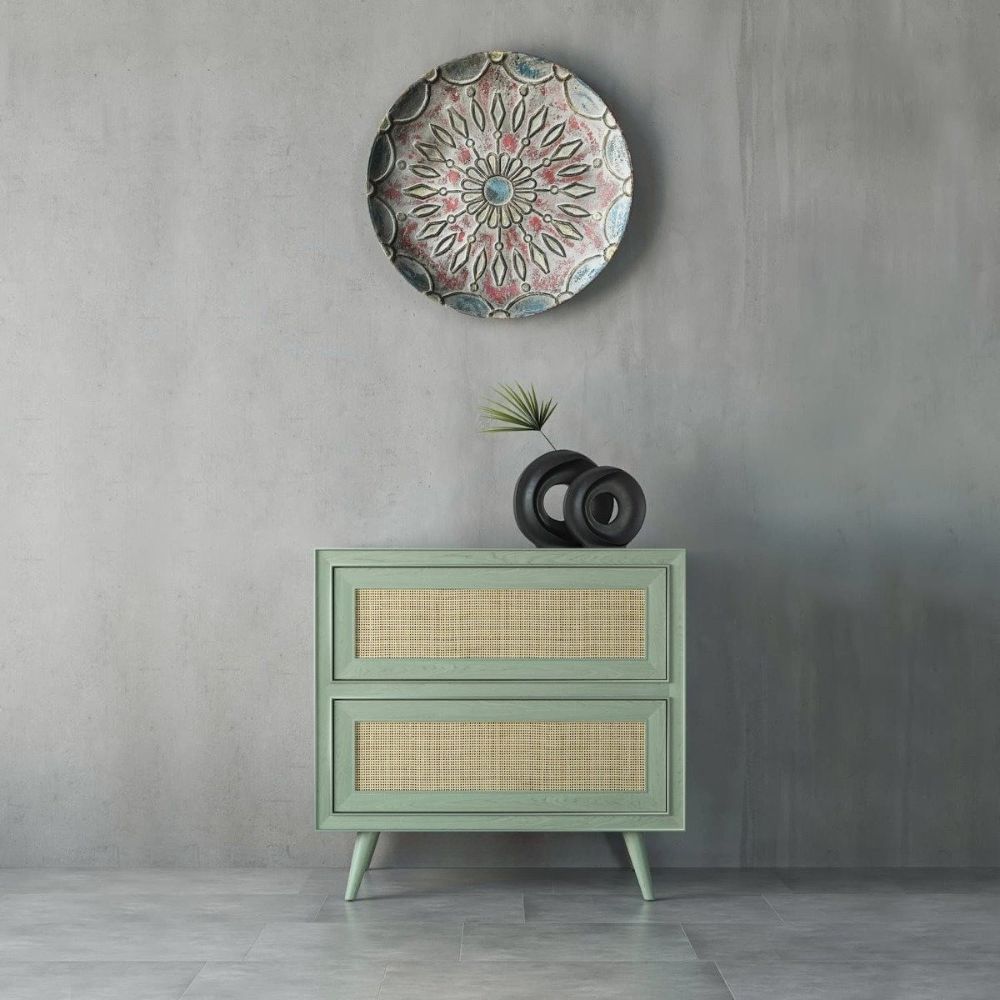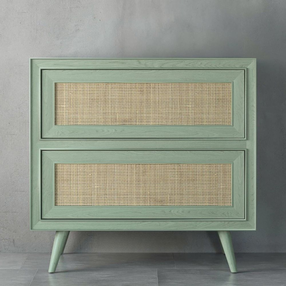 Wooden Cane Nightstand Bedside Table