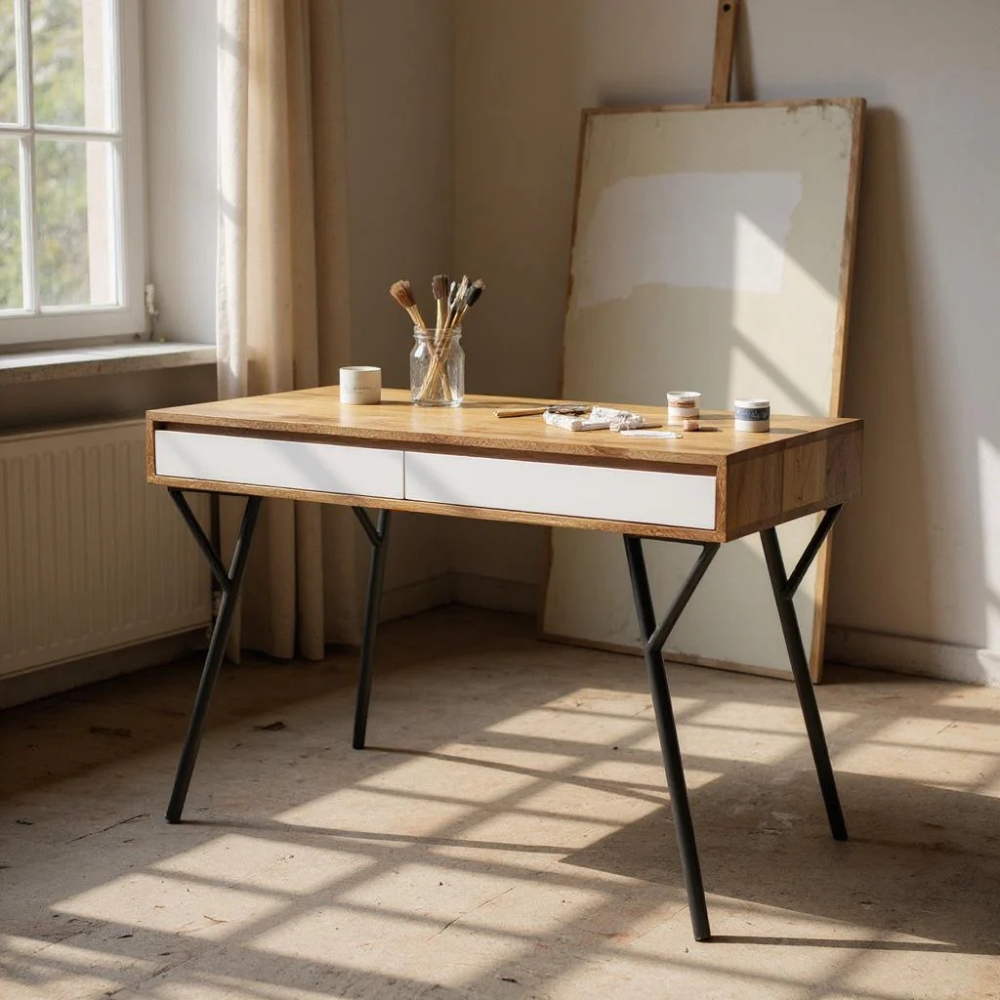 Wooden & Metal 2 Drawer Console Table