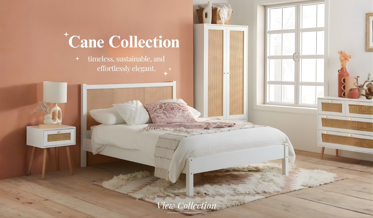 Jodhpuri Modern Cane & Khaki Oak Wood Bed